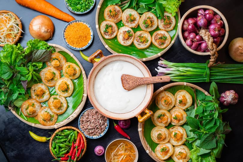 Những quán chuyên bánh khọt, bánh xèo mang hương vị miền biển là lựa chọn lý tưởng cho các buổi họp mặt. Món ăn được chế biến nóng tại chỗ, giòn rụm – thơm ngon, tạo không khí vui vẻ và gần gũi cho bữa tiệc.