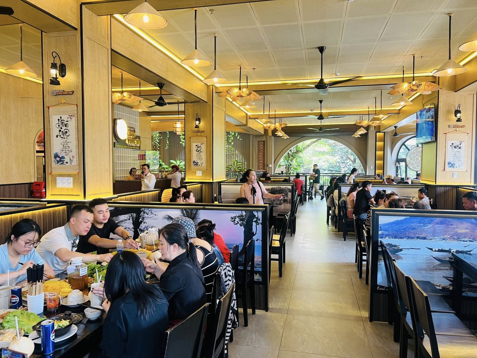 Cô Ba Vũng Tàu sở hữu không gian rộng rãi, thoáng mát, dễ bố trí bàn tiệc cho nhóm đông. Phong cách thiết kế mang nét truyền thống, gần gũi, tạo cảm giác thoải mái và thân thiện, rất phù hợp cho tiệc tất niên, liên hoan cuối năm hay họp mặt nội bộ.
